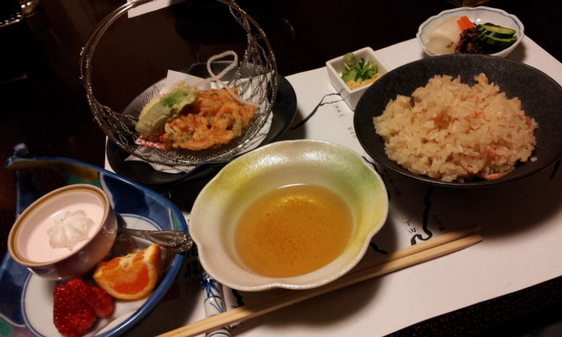 夕飯で真鯛やアワビを食べたり。